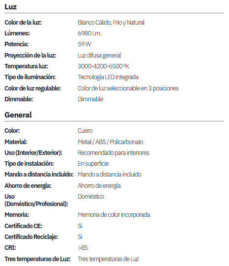 Ventilador Dani 59w 6980lm Cuero 4 Aspas Desplegables 106d 3000-4200-6500k Remoto, Reg.Intensidad, Memor. Y Tempor. 24