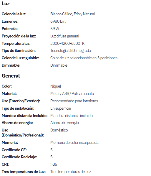 Ventilador Dani 59w 6980lm Niquel 4 Aspas Desplegables 6 Velocidades 106d 3000-4200-6500k Remoto, Reg.Int, Memori Y Tempor