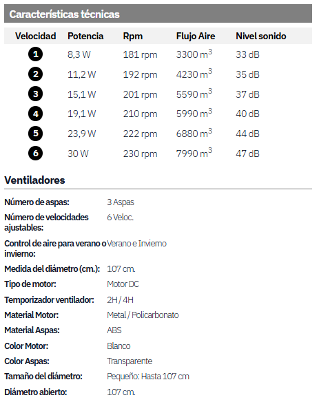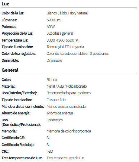 Ventilador Dc Capitan 60w Blanco 3 Aspas 107d 6980lm 36x48/107cm 3col. remoto + memoria + temporizador + reg.intensidad
